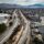 In the foreground, crews are backfilling over the 337-foot RCB extension, which connects to two new retaining walls forming on each side of the channel. Further down, you can see active wetland mitigation work and slope grading that will support the upcoming roadway expansion, and on the left side of the image, drilling is underway for the new soundwall foundations.